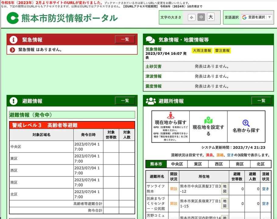 Please check kumamoto City Disaster Prevention Information Portal