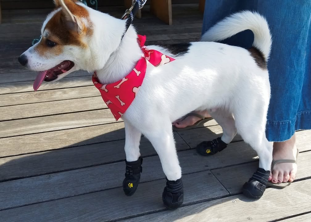I saw this fashionable pooch sporting some dandy paw pads today and it reminded me of another post I saw recently.