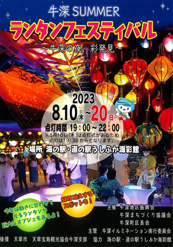 Kirk here. The Ushibuka Lantern Festival is underway. I’ve never gone to see the festival but Ushibuka is a special place – the farthest point from Kumamoto City in Amakusa.