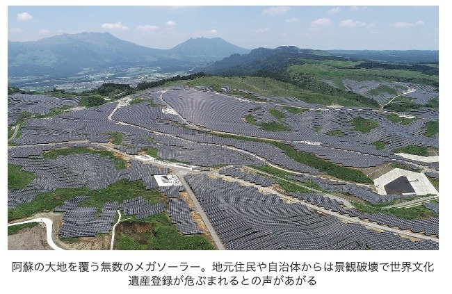 The concern is that the solar panels are an eyesore – black splats on the vistas the Aso area is famous for.