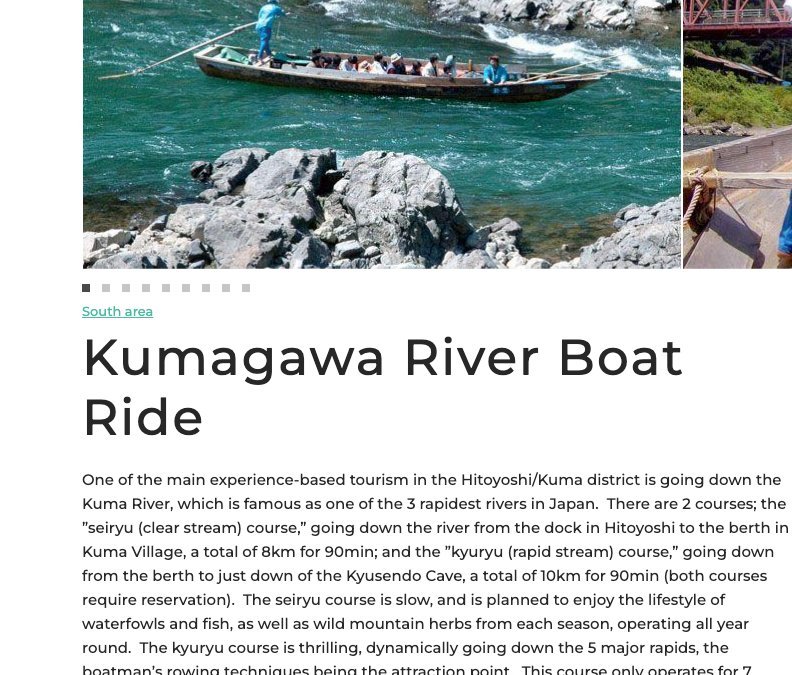 The good people at the prefecture fixed the text on the web page soon after a sent an e-mail: rafting –> river boat ride. :)