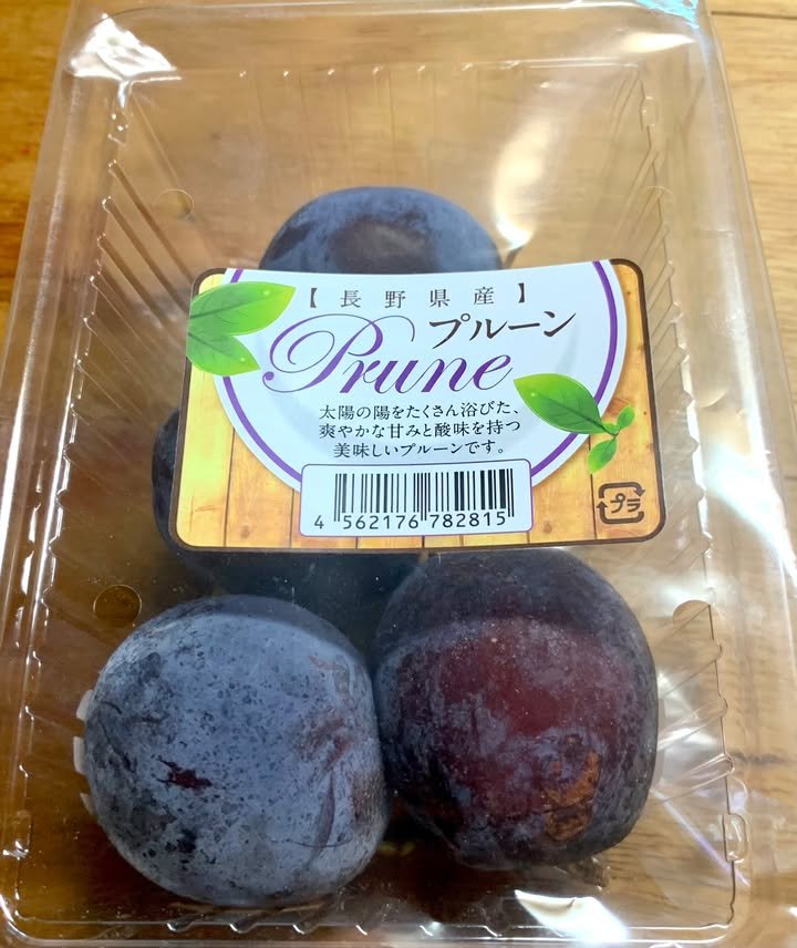“A plum by any other name would taste as sweet.” I’m pretty sure that the fruit you see would be labeled “Plums” in the US, where I’m from. A “prune,” by contrast, is usually a dried plum. But Wikipedia tells me that, “prune” can also refer to the “firm-fleshed fruit (plum) of Prunus domestica varieties that have a high soluble solids content, and do not ferment during drying.” So, I guess it’s not exactly incorrect to call these prunes – just confusing to old prunes, I mean “people,” like me.