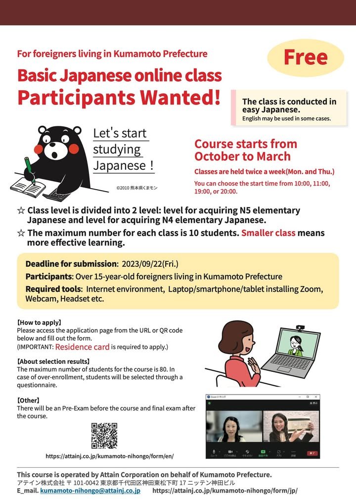 Kirk again. Sorry for the multiple posts in regard to the free Japanese classes. I found that Misato-machi published an announcement. If you were able to read the Japanese on the Misato-machi page you be able to find a link to the pdf of the posted I’ve included as an image with this.