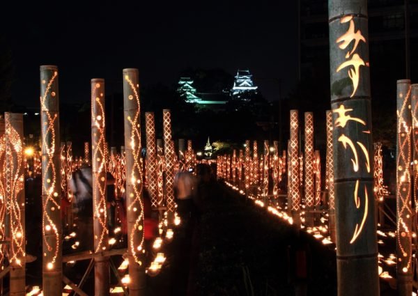 Name: 18th Kumamoto Livelihood Festival “Mizuakari” Date: 2023 October 7th (Saturday) Lighting time: 6:00 PM - 10:00 PM (Scheduled) October 8th (Sunday) Lighting time: 6:00 PM - 9:00 PM (Scheduled) Location: Various areas in Kumamoto City, Chuo Ward, Hanabata-cho Hanabata Park Hanabata Plaza (In front of NHK) Road in front of the Citizens’ Hall Sears Home Yume Hall Misumi Park (In front of the Kato Kiyomasa Statue) Tsuboigawa River and Nagabei Josaien Miyukizaka Kumamoto Castle