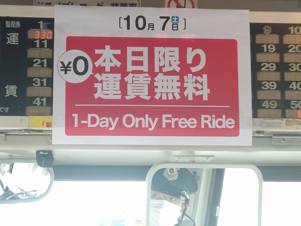 1-day only Free Ride. They ask you to get SEIRIKEN. Maybe, they want to find out how many people got on board. There is, of course, no charge. Atsuko.(๑˃ᴗ˂)و♡