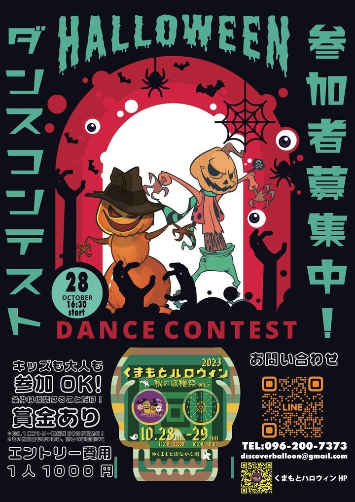 Kirk here. Shibuya in Tokyo is being quite emphatic that they don’t want people to celebrate Halloween there. Kumamoto, on the other hand, has a website devoted to promoting various Halloween events that are planned. One of them is this dance contest. Hey dancers, how ‘bout struttin’ you stuff?