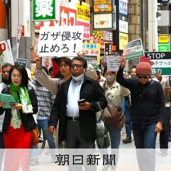 On the 21st, there was a demonstration in Shimotori, Chuo-ku, Kumamoto City, demanding the halt of the ground invasion into the Gaza Strip, an area of the Palestinian Autonomous Region, which the Israeli army is preparing for. About 40 participants raised slogans such as “Oppose violence against Palestine” and “Provide humanitarian aid, not weapons,” advocating for peace.