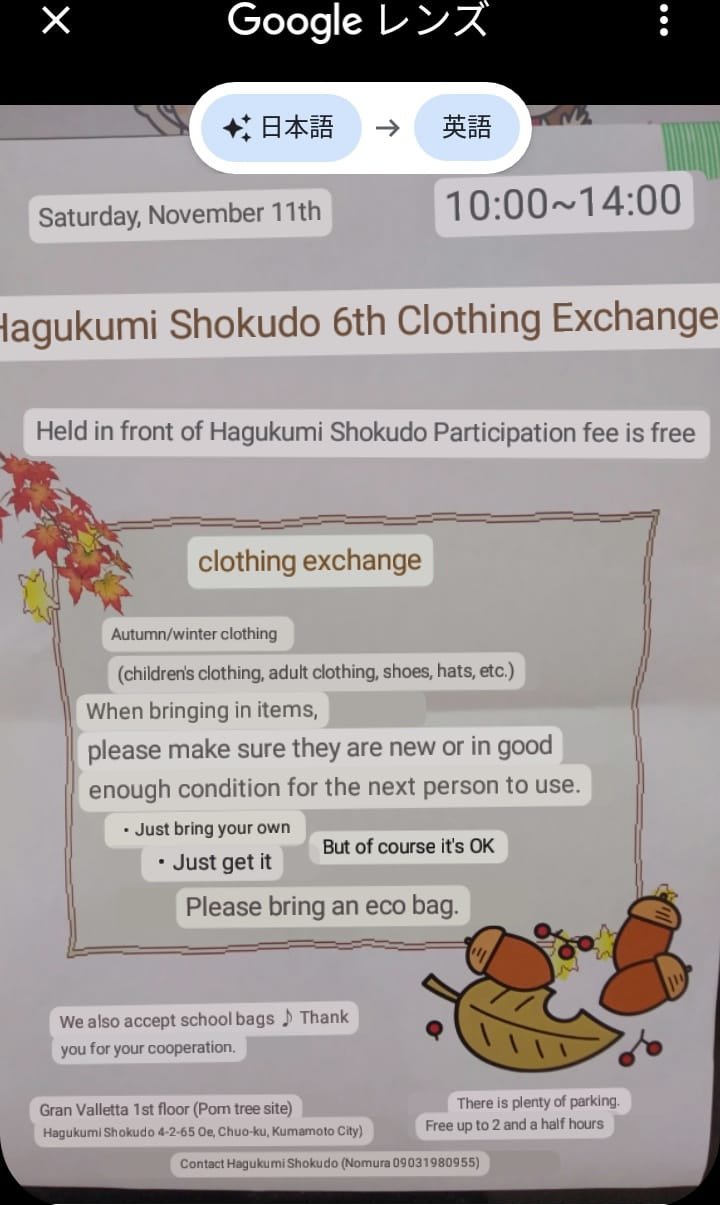 Atsuko here. Information about Clothing exchange.π ε€§ζ± γ°γ©γ³γγ¬γγΏ Ooe Grand Palletta, Kumamoto City. by γ―γγγΏι£ε https://www.facebook.com/hagukumikomyu