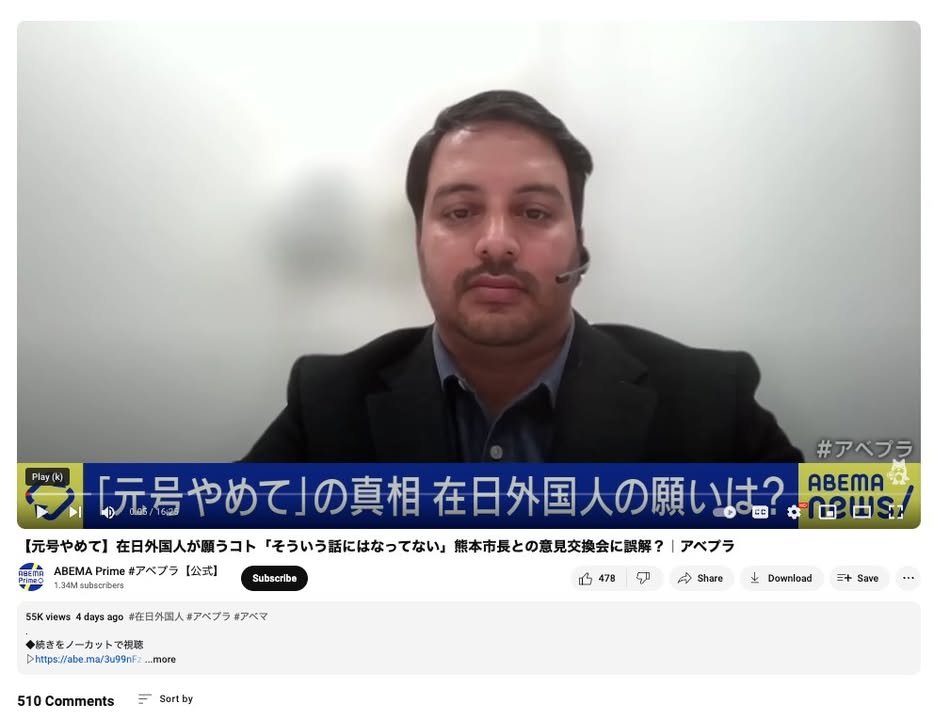 Kirk here. The other day I posted a YouTube link to this ABEMA News segment featuring Kumamoto International’s own Hari Devokta, talking about his meeting the other day with the mayor. I was amazed (and actually rather disappointed) to find the “reach” (number of viewers) of the post to be pretty dismal – a measly 116 at this point. That makes it one of the least popular posts on this page. I’m reposting it now without the link (in order to avoid any suppression by the Facebook algorithm) to double-check to see if people really just aren’t interested or if there’s something about the Facebook platform that caused this to get ignored.