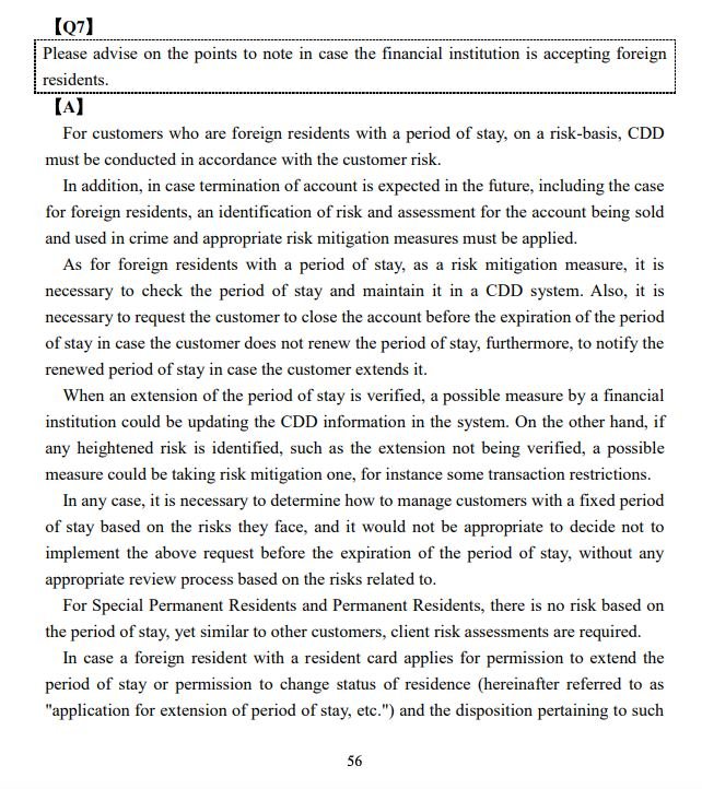 Frequently Asked Questions Regarding “Guidelines for Anti-Money Laundering and Combating the Financing of Terrorism” https://www.fsa.go.jp/en/news/2022/20221109/20220805_en_amlcft_faq.pdf