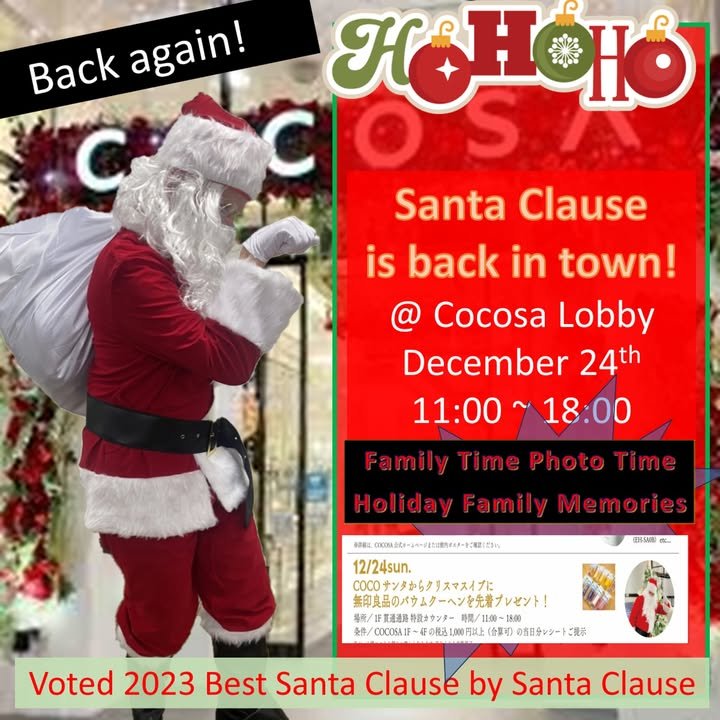 Santa is back in town. Christmas Eve at Cocosa from 11 AM to 6:00 PM Good opportunities for some family photos, or 2024 Christmas cards. If you happen to be downtown doing some last-minute Christmas shopping.