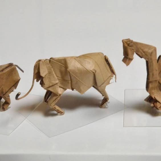 Kirk here. The images you see are made with folded oak leaves. The artist is a local man, Yoshihiro Watanabe, who, according to the article, is autistic.