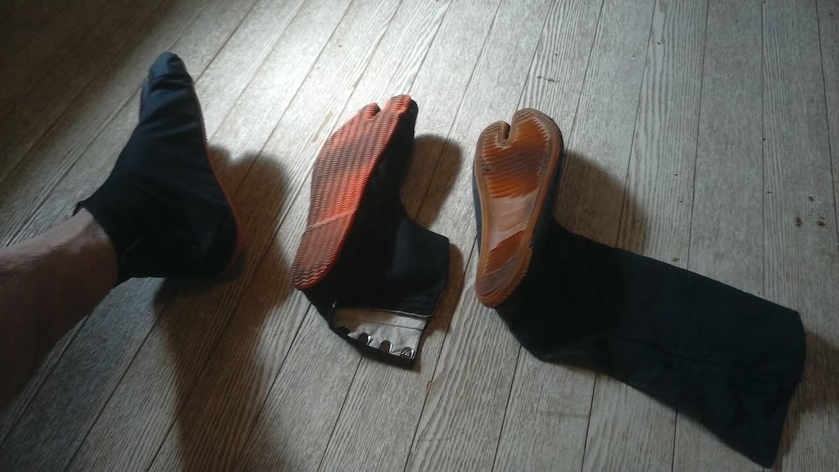 William Japan has some pretty fascinating footwear. Most are familiar with the wooden geta, which allow the wearer to stay above the muck. The jikatabi are cotton boots with a rubber sole used by construction workers for their flexibility. They hook up the back, are very comfortable. come in different heights, and are often worn in festivals. A great place to buy such footwear is on Kokai shopping street. In particular, near the torii at the entrance is a large shoe shop which is popular among festival-goers, providing a wide selection of unique footwear. This is my jikatabi collection.