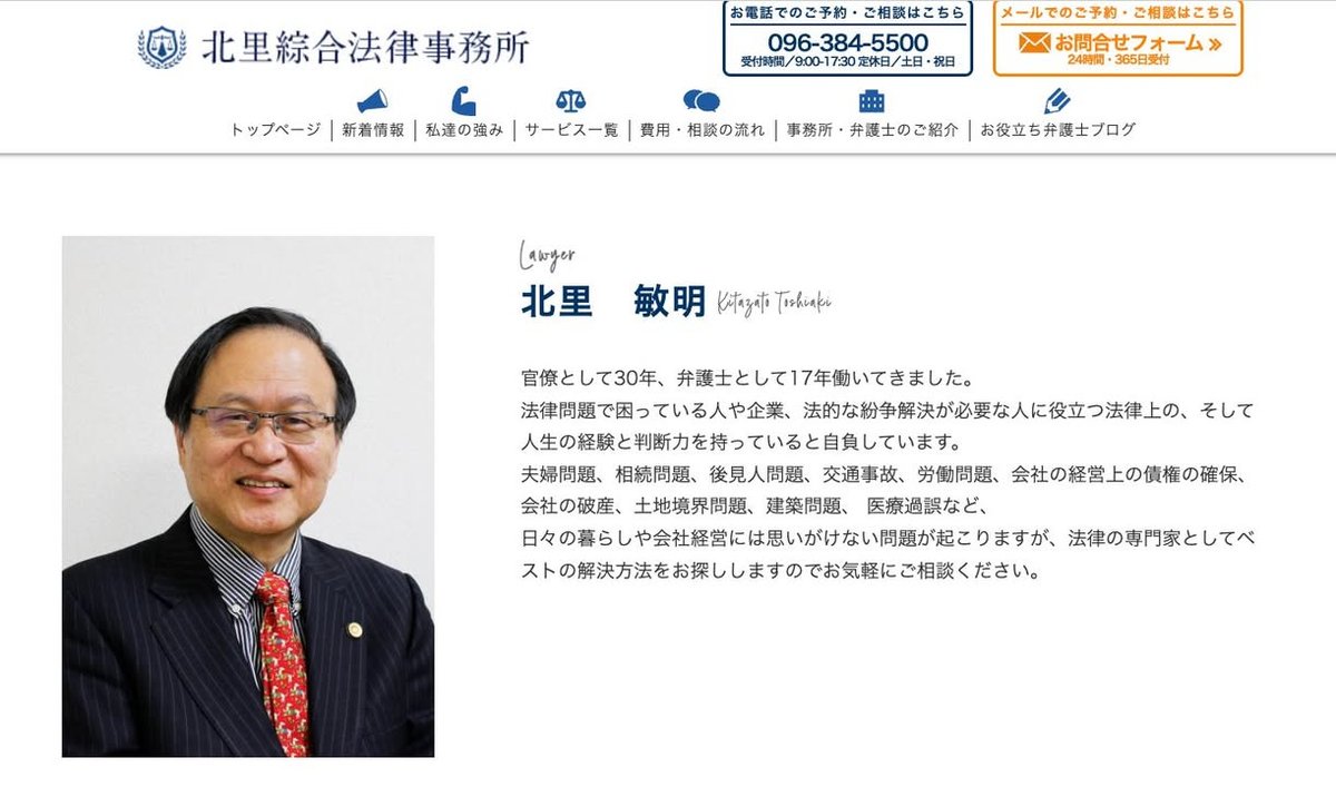 Addendum: As one might expect from his study at Harvard, I would put Kitazato-sensei in the “high-powered” category of lawyers. It became clear in talking with him that he hobnobs with politicians and is generally well-connected. That’s good but that means that his fees may be a bit higher than others. By the way, though I don’t think he charges extra for it, he’s a related to KITASATO Shibasaburo, the famous physician and bacteriologist from Kumamoto who is “remembered as the co-discoverer of the infectious agent of bubonic plague in Hong Kong during an outbreak in 1894.” (quote from Wikipedia)