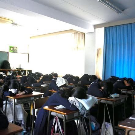 Letting students nap for a short time during the day strikes me as a very good idea. This enlightened approach is being practiced at Uto Junior and Senior High School. – Kirk