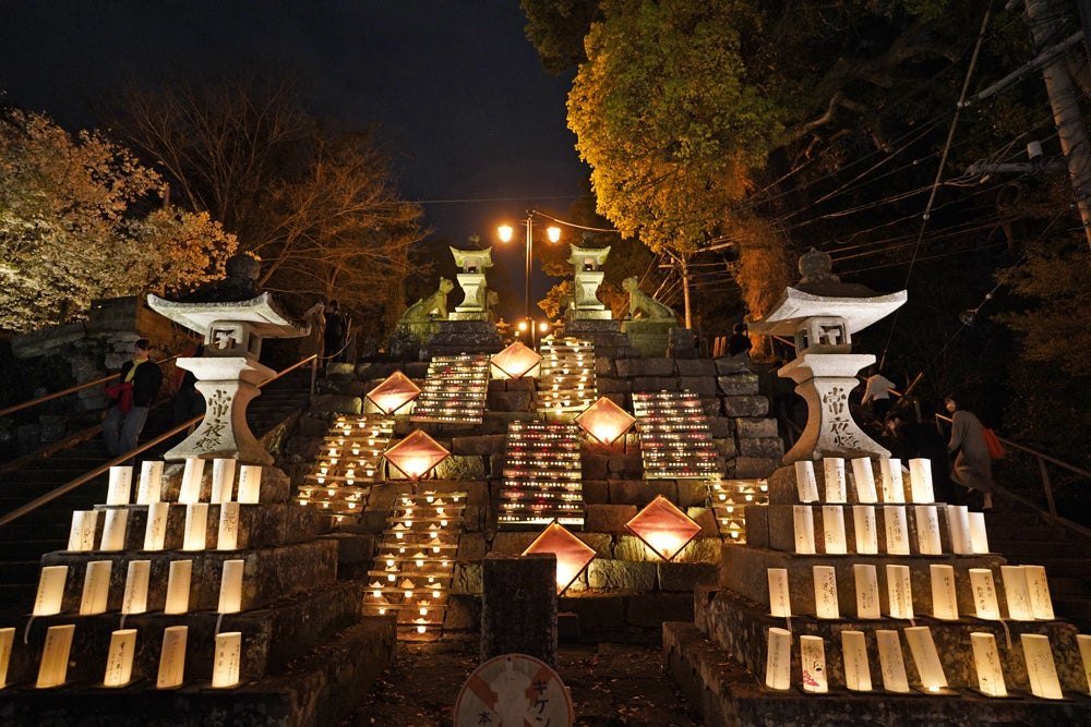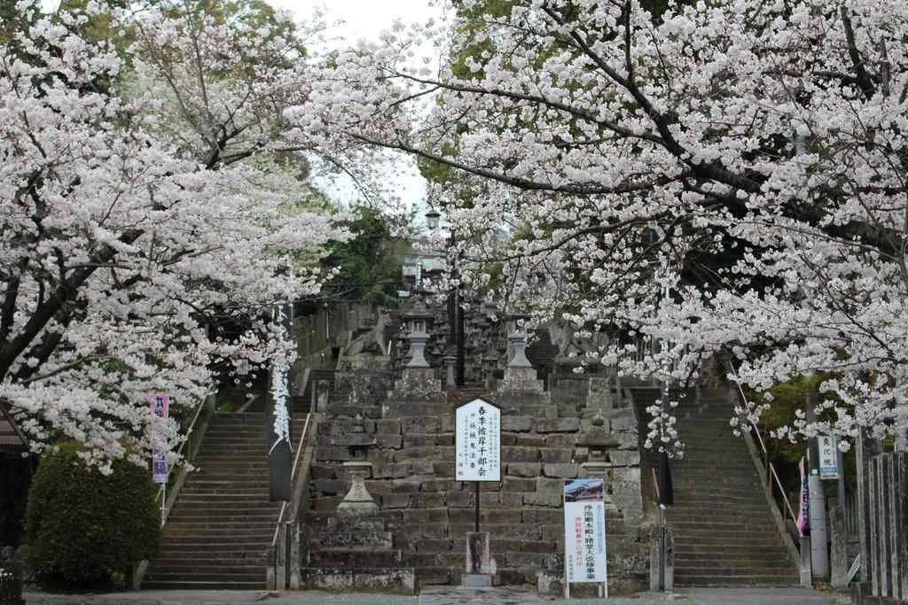 William The history of the Buddhist temple (and former Shinto shrine) Honmyoji is complex. It got its start in 1585 - in Osaka, actually - to pray for the repose of the soul of Kato Kiyomasa’s father, Kiyotada. In 1600, after Kiyomasa became the lord of Kumamoto Castle, it was moved to within Kumamoto Castle grounds. Kiyomasa died in 1611, and according to his will, a statue of himself was enshrined at Jochi-byo Mausoleum on Mt. Nakao, to which the temple and shrine were relocated and co-occupied from 1614. Due to the Separation of Shinto and Buddhism ordinance during the Meiji period, the temple and shrine were separated, with the shrine moved to Kumamoto Castle to become Kato Jinja and the temple remaining as we know it today. Leprosy (or “Hansen Byo,” as it’s known in Japanese) affected the temple greatly. Afflicted beggars lined its steps, and inns were created along the slope to accomodate both beggars and pilgrims alike. Devote pilgrims donated stone lanterns which proceed up the center of the double steps, and many cherry trees were planted. It is the cherries that will catch your attention at this time of year. Rather than a sit-and-drink hanami, consider a mobile (and rather strenuous) one, drinking in the fragrance of the cherries and the historical ambience (as well as a beer or two) while you enjoy what really should be a World Heritage Site. During this season, the stairs are illuminated at night, when it’s also less crowded. It’s a very long walk from the tram stop Honmyoji to the top and back. Your legs may hate you the next morning, but your memories (and camera) will not. (Photos ripped from Web.)