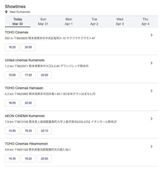 Oppenheimer can now be seen in Kumamoto. I don’t have a single URL to share but if you search for “Oppenheimer showtimes near Kumamoto” you should find relevant information. – Kirk