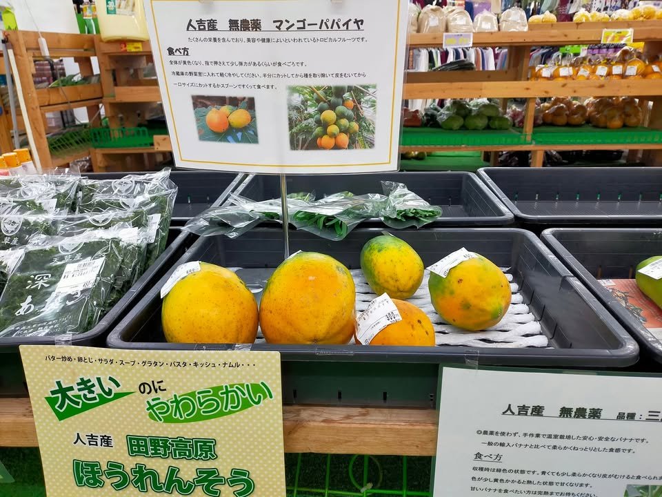 Here are some recommendations for local, inexpensive and delicious fruit shops. Atsuko(❁´∀`❁)ノ𖤐´- Recommendation① I discovered that my favorite fruit, papaya, is grown in Hitoyoshi. I knew that mangoes were grown in Tensui, but I was SO surprised to find sweet yellow papayas, not green papayas, on sale there. My grandparents were Hawaiian immigrants (they came back to Kumamoto before WWII), and my father used to buy them as souvenirs for my grandmother when he used to go to the prefectural office on business. Papayas, which are still hard to buy in supermarkets, are made in Hitoyoshi! and sold at Superkid in Hitoyoshi!. I had sometimes seen green vegetable papaya at vegetable shops in the countryside, and Super Kid had them, and I ate them in curry and miso soup, but I had no idea that the yellow fruit papaya could be found in Kumamoto. I can’t believe I can buy it in Kumamoto, in Hitoyoshi!! They are sweet and delicious. Hitoyoshi’s Superkid! I recommend it. Recommendation②. GW is the season of watermelon in Kumamoto. My volunteer friend has a vegetable market by farmers every Tuesday morning from 10am to 12pm at Ramen Party in Mashiki. Mashiki is also famous for watermelons. They are very cheap and tasty, out of standard products that cannot be sold in the market. You can also enjoy delicious ramen at the Ramen Party. Proceeds from the sales will be used to fund a soup kitchen for disaster relief. The team did a lot of soup-runs during the Kumamoto earthquake, and I have taken Kumamoto University international students to volunteer many times, so I am sure they will welcome international customers as well. They also run a community space, so please come and have a cup of tea and get to know the local farmers. The vegetable market is every Tuesday morning.