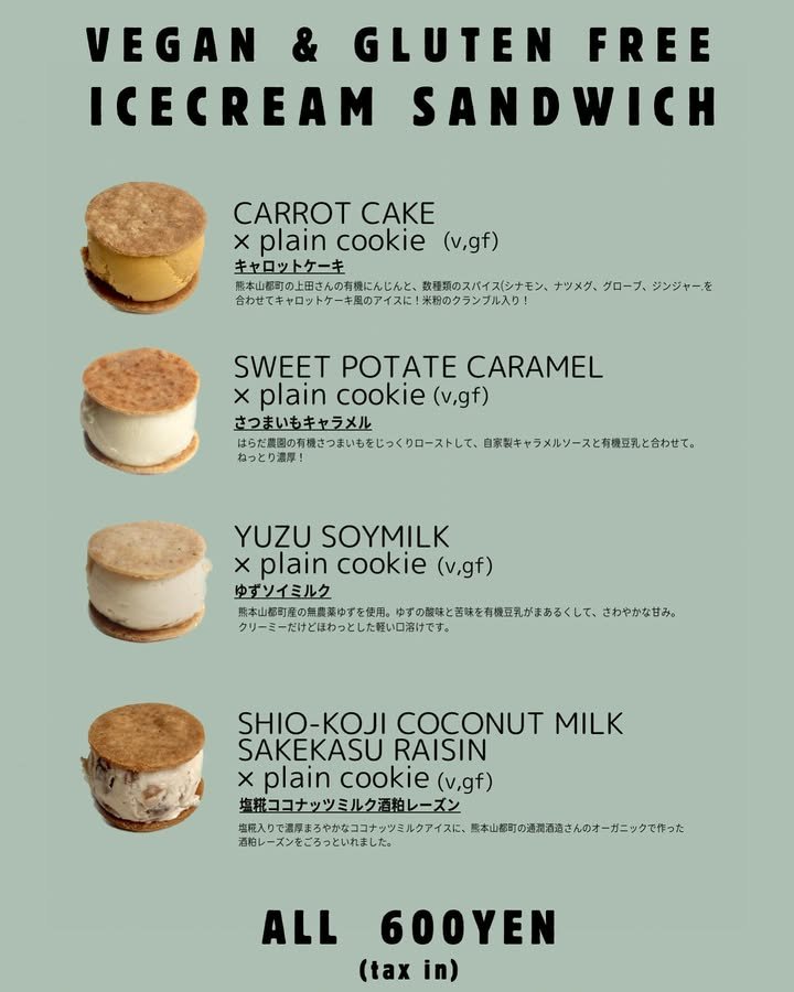 Kirk here. I saw a segment about this little vegan ice cream shop in Yamato-cho (not far from Tsujunkyo) the other day. I haven’t had a chance to taste the ice cream yet but I fully expect to enjoy it when I finally get a taste. If my memory serves me correctly, in the news segment ARBOL (see picture) said she tasted vegan ice cream while traveling abroad and decided she wanted to do something similar in her home town of Yamato-cho.