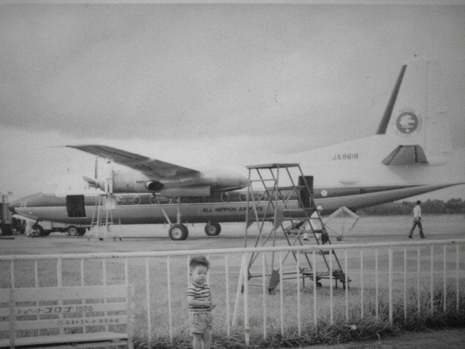 A little note about the history of the area, this was where the airport was in Kumamoto from 1960 until 1969, when construction started on the Aso-Kumamoto airport, which was completed in 1971. The field was known as Kengun field and as one might expect, the location of that airfield was intially related to military matters, with the Jieitai base formerly a Mitsubishi airplane factory. In fact, not only was the airfield the launch point for Tokutai/Kamikaze flights against Okinawa at the end of the war, it also was the jumping off spot for the raid at Yontan airfield in Okinawa, shortly after Okinawa campaign started. At the time, the area was originally known as Takamiya-so, but came to be called Kengun, expanding from the original Kengun, probably because of the military industries in the area. Looking for information, I came across this 1964 picture of a plane and a boy who is probably my age at the time and so could still be living in Kumamoto. (link below)