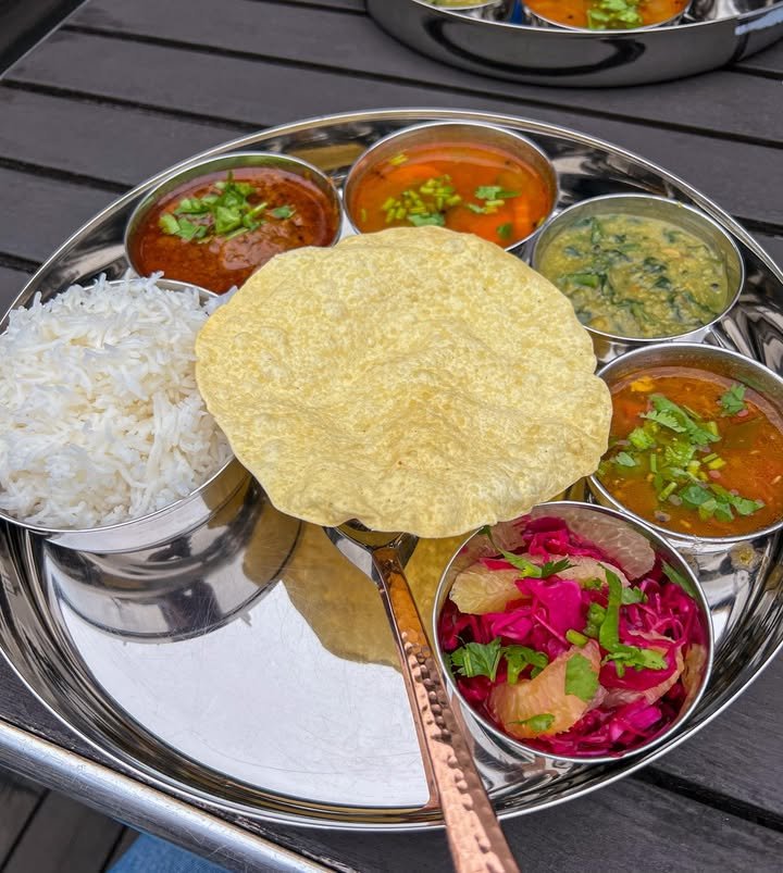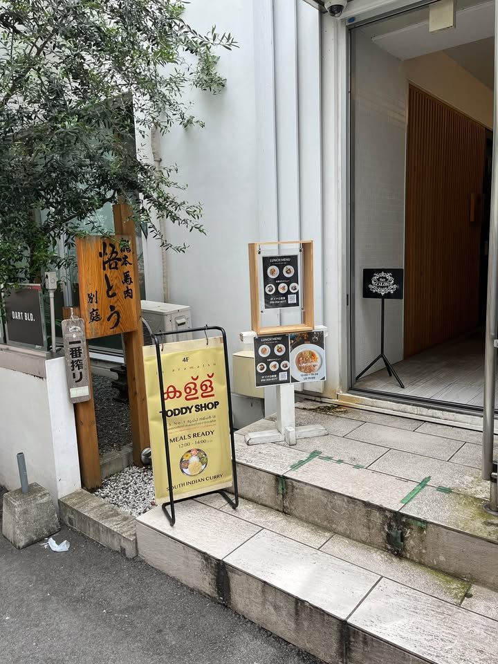 Joe Tomei here, and FFF goes downtown to check out some South Indian food! Because of demographics, when we think of Indian cuisine, we think of Northern India. A lot more wheat so naan bread, and the curries are heavier and creamier and almost all of the Indian restaurants in Kumamoto are based on that style. So I was really happy to find Toddy’s, (https://www.instagram.com/toddy_shop_kumamoto/) which does a veg and non-veg thali (set with small bowls of different curries). Toddy’s is a bit of a pop-up shop, only open on Saturdays and Sundays for lunch in a 4th floor space that is a bar/snack (aramatsu bar) the rest of the week. Located behind the shiyakusho, the sign has Malayalam script and is only open from 12 to 2. He sometimes takes the day off, so check the instagram. A pick of the store front and last weekend’s non-veg thali.