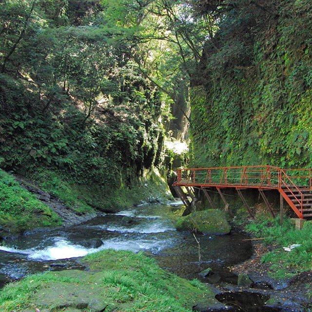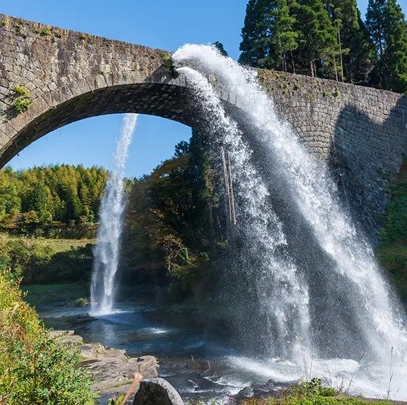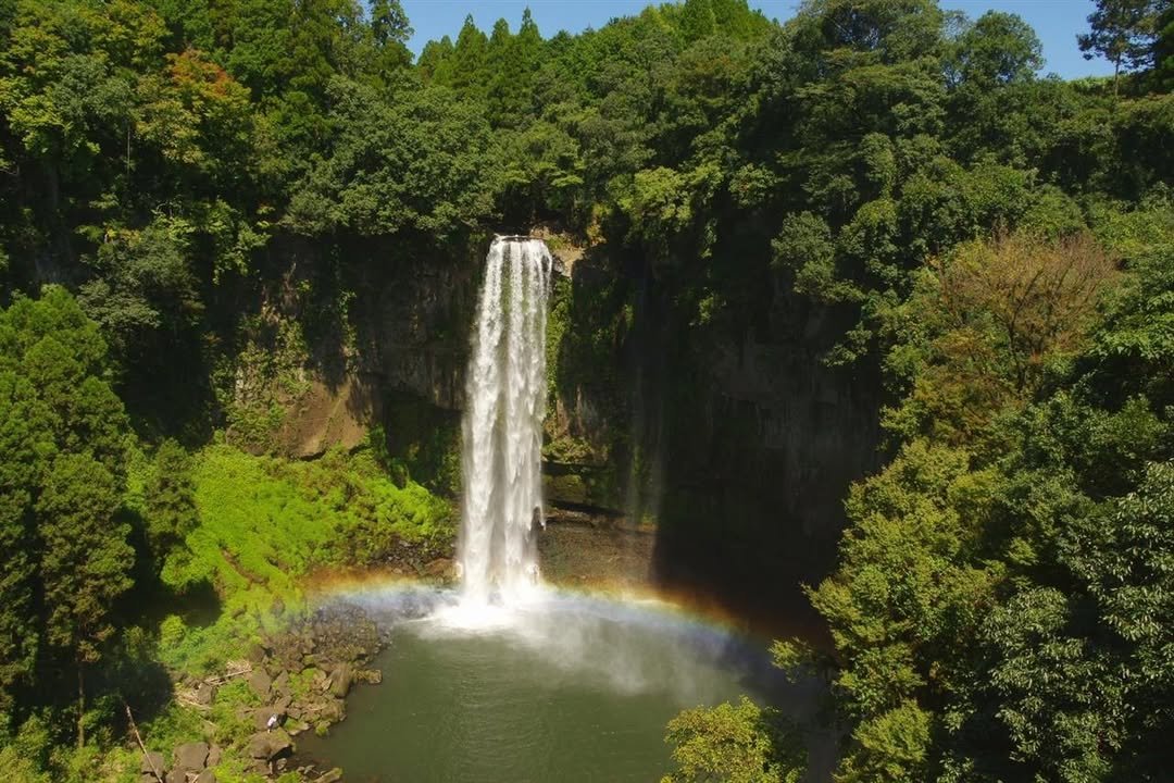 With rainy season over and that infernal cauldron which is summer upon us, perhaps you would like to flee Kumamoto for the relative coolness of the mountains. My wife’s family hails from Yabe (now referred to as Yamato-cho); family business took me there recently, and I drove the new trans-Kyushu expressway (Kyushu Oudan Kousokudorou 九州横断高速道路, photo below). Not only has it turned what was once a two-hour drive into a 45-minute one, it is a gorgeous, surprisingly straight road with few tunnels and many bridges from which tiny hamlets and rural scenery can be viewed. Yabe is most famous for its late-Edo era aqueduct bridge Tsujinkyo (通潤橋), which most people look at and promptly depart. Too bad as there is much more. To the right of the bridge is a stairway cut into a cliff which descends to the marvelous Gorō ga Taki waterfall (五郎ヶ滝). Though frowned upon, it is possible to swim to the side of the waterfall (hint: swim backwards as the ricocheting water comes like bullets), climb up a shelf on the cliff, and then move directly behind the waterfall. This is both refreshing and thrilling. The path continues through a gorge along a pathway suspended above the river, eventually leading to stairs which lead out of the gorge to rice paddies and back to the bridge. Note the different rock types on the gorge walls - this is due to the area being formed by two different eruptions of Mt Aso. The walk is only moderately strenuous: it is short but contains long flights of stairs. There are few dining options in Yabe (mom-n-pop ramen shops, a Joyfull), so you might want to pack a picnic, though the new highway may well change this by making Yabe more accessible. Finally, the expressway will eventually connect Kumamoto with Beppu, Oita, which has some excellent beaches. More about that later. - William