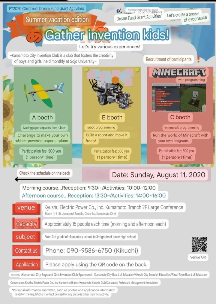 Kumamoto City Invention Club https://www.facebook.com/hatsumeikids.kumamoto