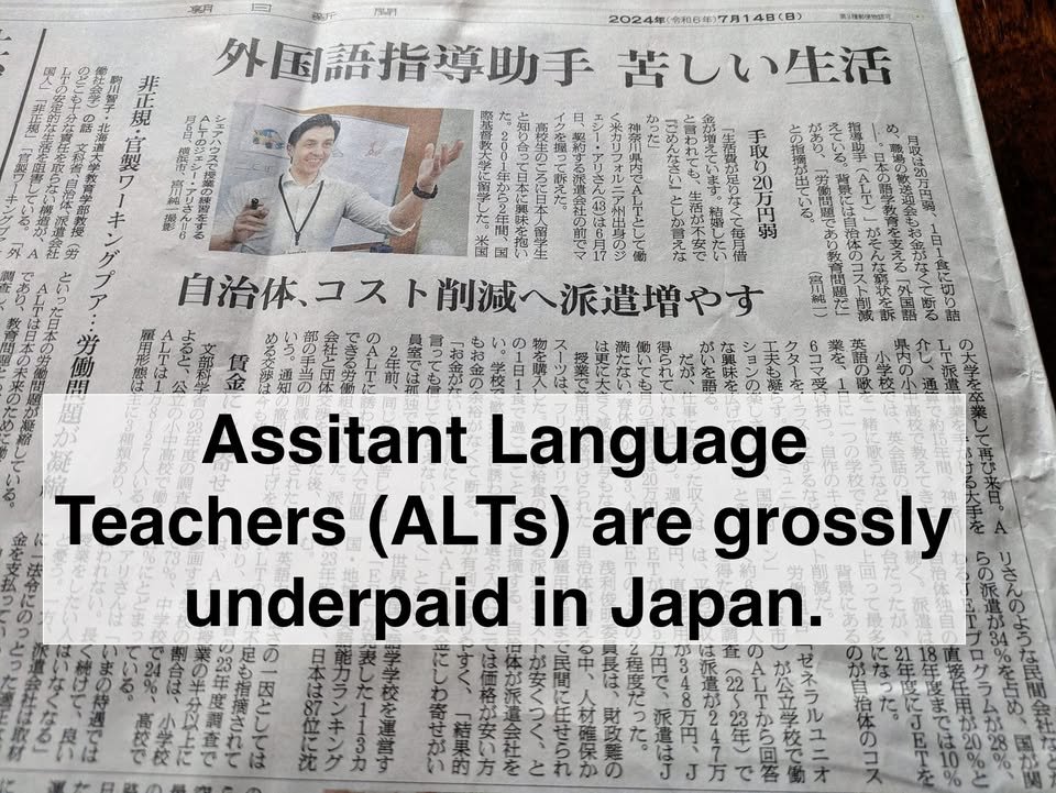 Kirk here with something that is not specific to Kumamoto but is definitely relevant to the lives of folks in Kumamoto who are working as ALTs. I saw this article you see pictured in Japanese and thought it would surely have been published in English but, at this point, no such luck. But, never fear, AI to the rescue – I’ll append a ChatGPT translation of an abridged version of the article to this post.