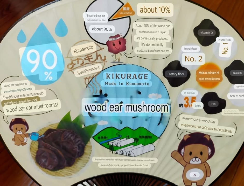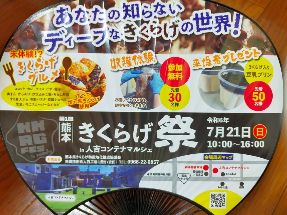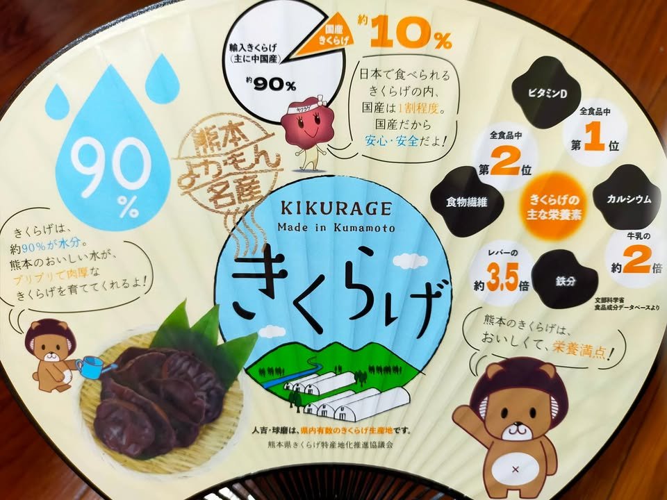 The 1st Kumamoto Kikurage Festival was held today in Hitoyoshi City. I love Kikurage too. Kikurage is an indispensable ingredient in tonkotsu ramen, Taipien, and Chukadon. Hitoyoshi Kuma is one of the leading Kikurage production areas in the prefecture. There were kikurage croquettes and kikurage pudding, but I bought fresh kikurage (dried kikurage is often seen, but fresh kikurage is only available in the production area) and grilled Hitoyoshi ayu fish. I was too late to go to the market, so I did not have a chance to experience the harvesting process. Hoping you love Kumamoto tasty Kikurage too. ٩(๑❛ᴗ❛๑)۶Atsuko