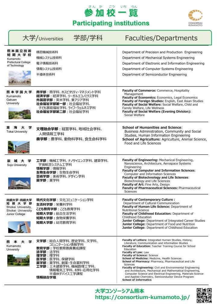 #熊本県立技術短期大学校 #熊本学園大学 #東海大学 #崇城大学 #尚絅大学 #尚絅大学短期大学部 #熊本大学 #大学コンソーシアム熊本