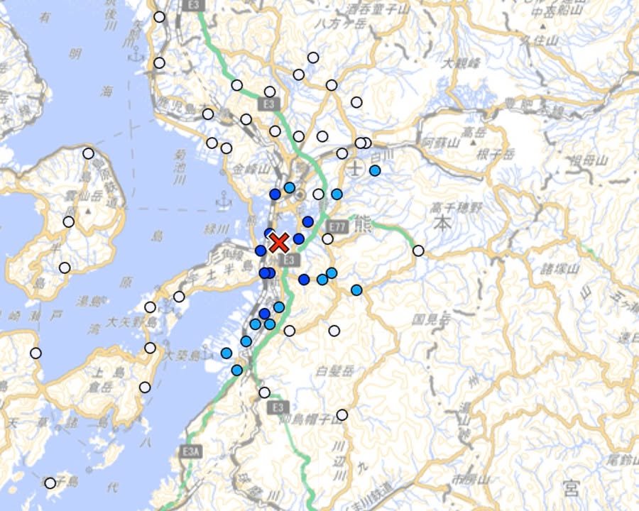 Time: 20:35 Magnitude: 3.7 Depth: About 10 kilometers Highest shindo reading: 3