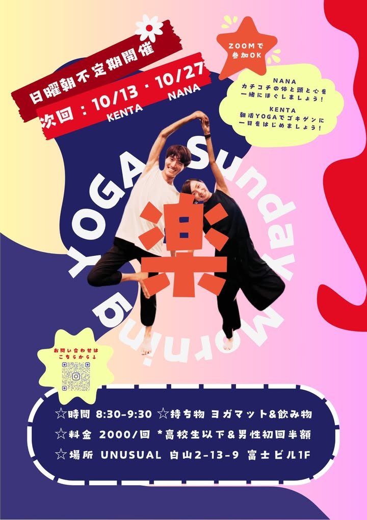 私たちはこのヨガの集まりを週1回に増やすことを考えています。もしあなたやあなたの知り合いがヨガの先生で、教える場所を探している場合、ぜひご連絡ください。