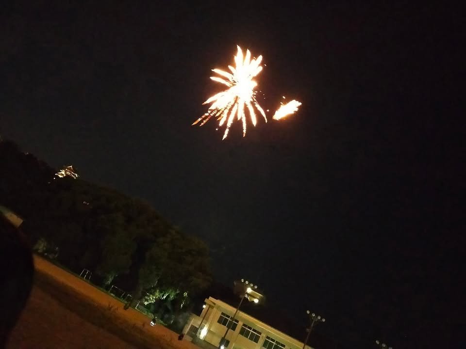 Some of those who went to see Mizuakari yesterday may have heard the sound of fireworks near Kumamoto Castle. Last night, there was an autumn festival held by the PTA and the local community association at Joto Elementary School near Kumamoto Castle. I didn’t share it in advance because it was a festival for the children of the school district, but I will share these pics with you because the match of the fireworks display by the family fireworks prepared by the children’s parents and Kumamoto Castle was magnificent. I think you can feel the love for Kumamoto Castle from the residents.(^O^)/Atsuko