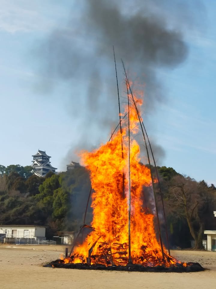 The PTA of Joto Elementary School and local residents held a Dondoya right near of Kumamoto Castle. Wishing everyone in Kumamoto good health and prosperity in 2025.