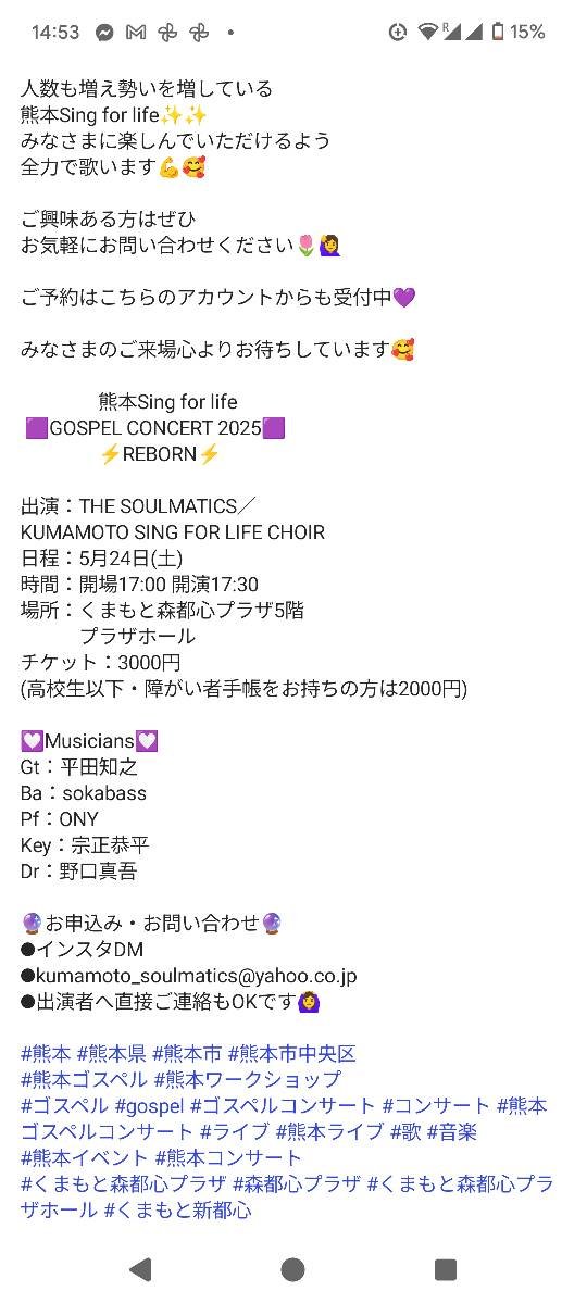 A local gospel choir will be holding a concert next Saturday evening (24th May) at Shintoshin Plaza ๐ต๐ค ๐ถ