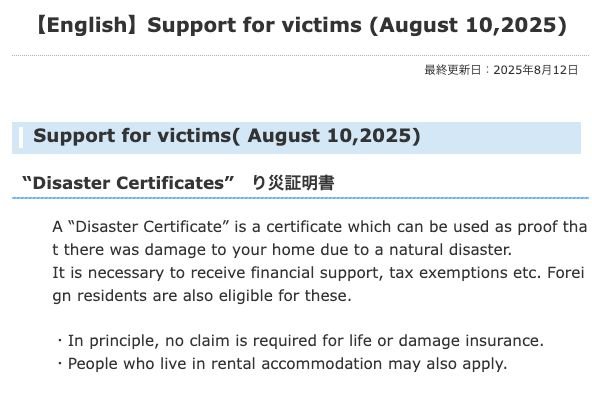 If you are one of those whose property was damaged, you may be able to get compensation. Check out this page from the prefecture.