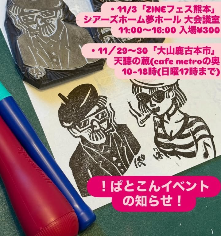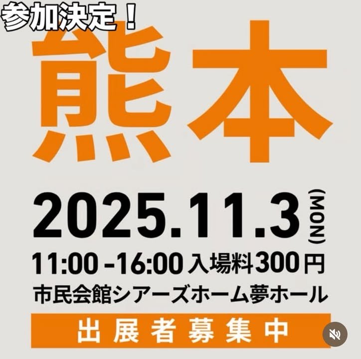ZINE Fest Kumamoto https://note.com/bookcultureclub/n/nef34a506c690 ■ Date: Monday, November 3, 2025 ■ Hours: 11:00 AM - 4:00 PM ■ Admission: 300 yen ■ Location: Civic Hall Sears Home Yume Hall, Large Conference Room (https://stage1kmj.jp/) 1-3 Sakuramachi, Chuo Ward, Kumamoto