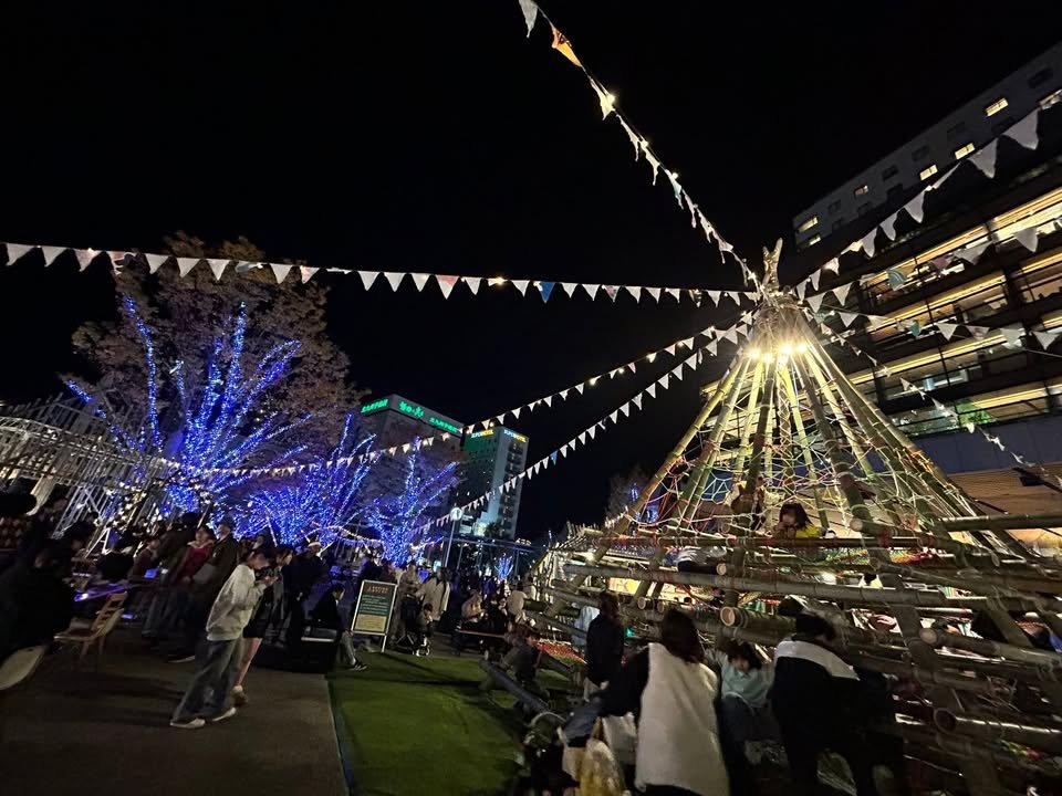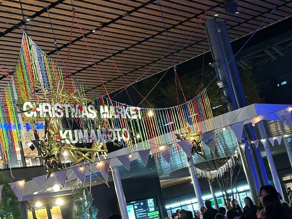 Atsuko here.٩(ˊᗜˋ*)و♪ The Christmas market in front of Kumamoto Station has started! Sofas to relax on, beanbag cushions. Chocolate drinks, chocolate-infused alcohol. A log circuit kids climb all over. Christmas is for families to enjoy together, but also for couples. Adults and children alike can have fun. That kind of planning, and the city’s ability to make it happen, made me incredibly happy and moved. It was delicious 💕 Tatami-floored sake festivals are nice, but the Christmas market with its luxurious sofas comes even more highly recommended ✨ Amu plaza is formidable 👍👍👍