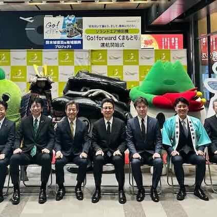 Kirk here with news about how Solaseed Air is planning to help promote the cities of Kumamoto, Kikuchi, and Yamaga, the towns of Takamori and Mifune, and the village of Minamiaso via in-flight announcements and articles in their in-flight magazine. Sounds good. One thing I noticed, though, is the odd punctuation that has become pretty common in Japan, "Go! forward Kumamoto." I once wrote a letter to the editor of the Asahi Shimbun (published nationally; Japanese edition) that NHK's "Go for! Tokyo 2020" (Olympic slogan) was very odd as English because an exclamation mark functions as the end of a sentence and "Go for!" doesn't stand alone as an utterance. Before that, my university wanted to create a poster or something that said "We are! Kumagaku" — all in English (but, of course, for a Japanese audience). Fortunately, the higher ups listened to reason and came up with a better slogan.